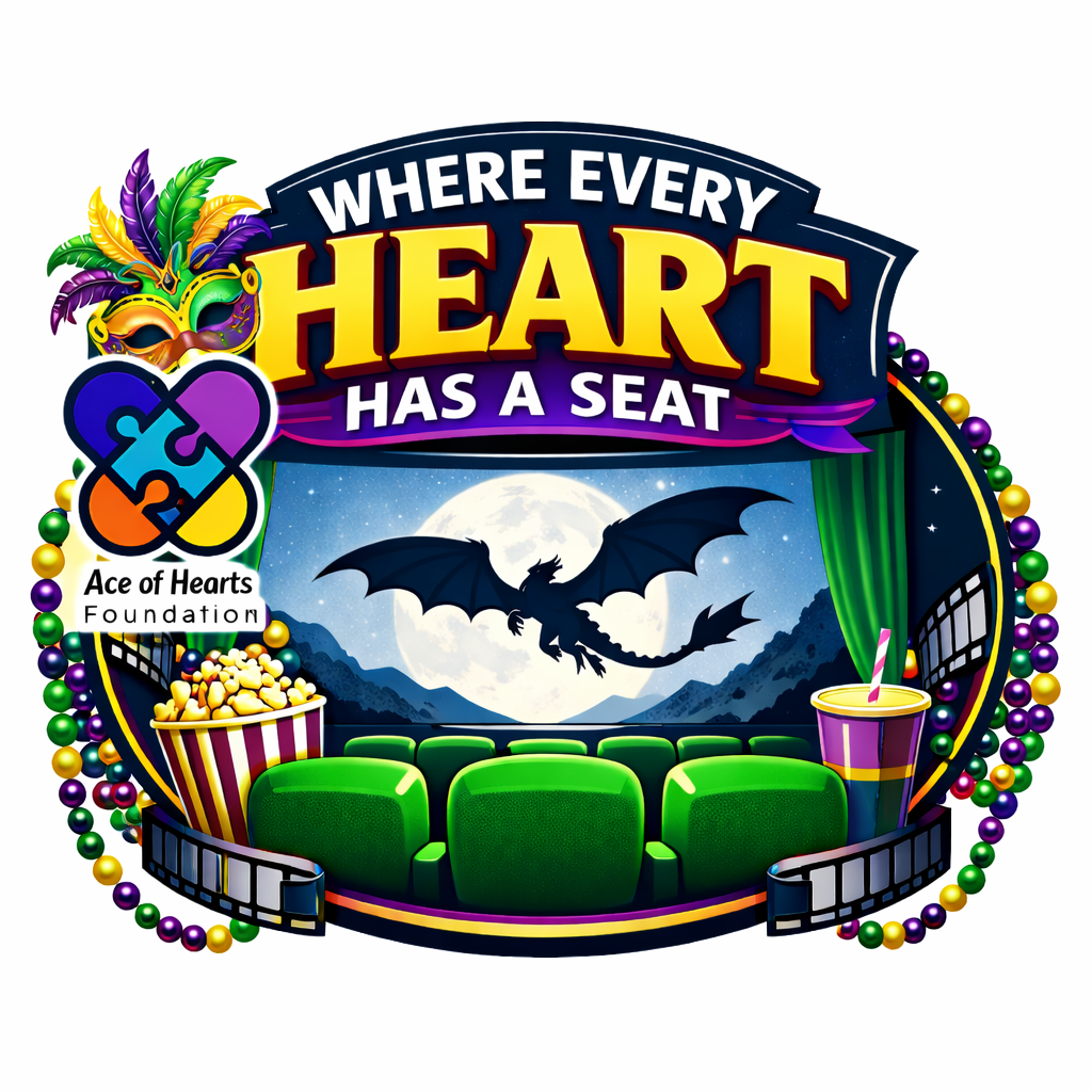 Set your calendars for Monday, February 16th (Lundi Gras!!) at 1PM for the 2nd “Every Heart Has a Seat” event at the Movie Tavern with the showing of How to Train a Dragon! Families will be treated with a Small Popcorn, a Small Drink, Tailgate Style Buffet Burgers, and Chicken before the movie!! Email info@aceofhearts.org if interested!! We will be sending a sign up link soon! Mardi Gras attire is encouraged!